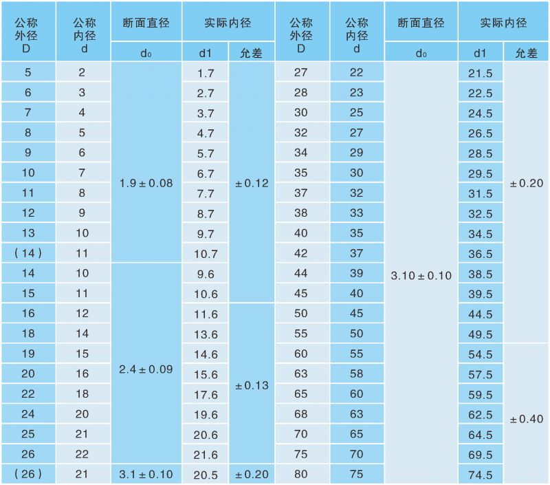 表1:O型圈標(biāo)準(zhǔn)一覽表